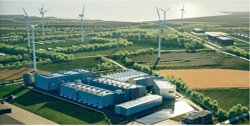 Planungsbild der 320 MW-Elektrolyseur-Anlage in Emden. Foto: EWE/Jan Lübkemann